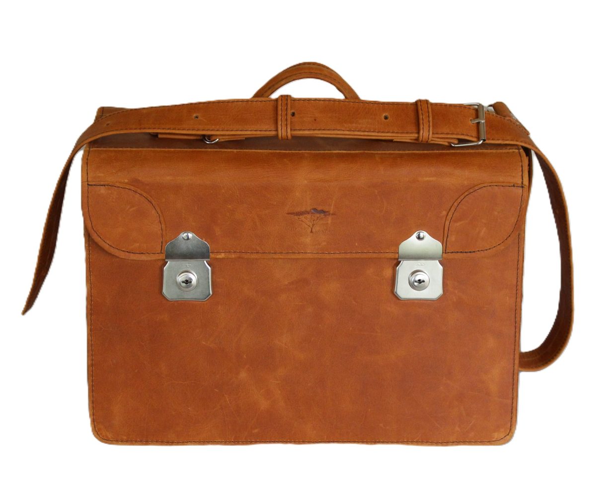 Old style Leather School Bag. This classic school bag is made from diesel leather and finished off with top quality fittings. When you choose our school bag, you choose a strong, durable bag that will last! This bag is available in tan or dark brown. You can also choose between a 5 or 6 compartment school bag. It can be made with locks or with straps and buckles. The shoulder strap can also be worn backpack style for more comfort.